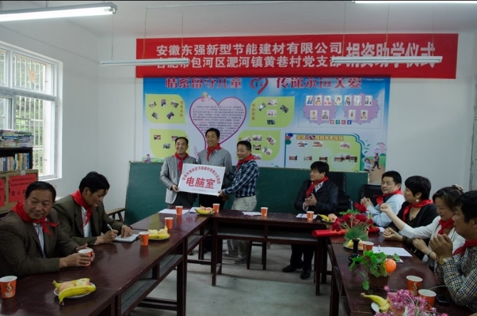 在捐資儀式上,董事長(zhǎng)倪修倫親手將十臺(tái)價(jià)值三萬(wàn)余元電腦,交給了涼亭小學(xué)校長(zhǎng)手上。董事長(zhǎng)說(shuō),作為一個(gè)成熟的企業(yè)來(lái)說(shuō),有責(zé)任關(guān)愛(ài)山區(qū)的教育事業(yè),今天的捐贈(zèng)活動(dòng)是關(guān)愛(ài)山區(qū)教育事業(yè)的第一步,今后要把關(guān)愛(ài)行動(dòng)持續(xù)下去??偨?jīng)理深情的說(shuō),今天回到家鄉(xiāng),回到母校,倍感親切,我懷著感恩的心,報(bào)答家鄉(xiāng),報(bào)答母校。合肥市包河區(qū)淝河鎮(zhèn)黃巷村黨總支也向涼亭小學(xué)捐贈(zèng)了電腦操作臺(tái),書記黃帥在捐贈(zèng)儀式上作了講話。